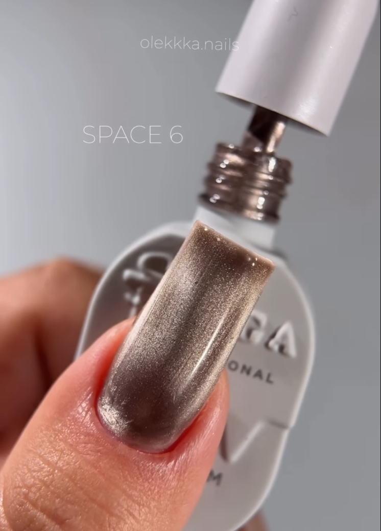 Saga Professional gel polish Space Cat ย gel polish can be applied as a stand-alone coating or on a colored base.