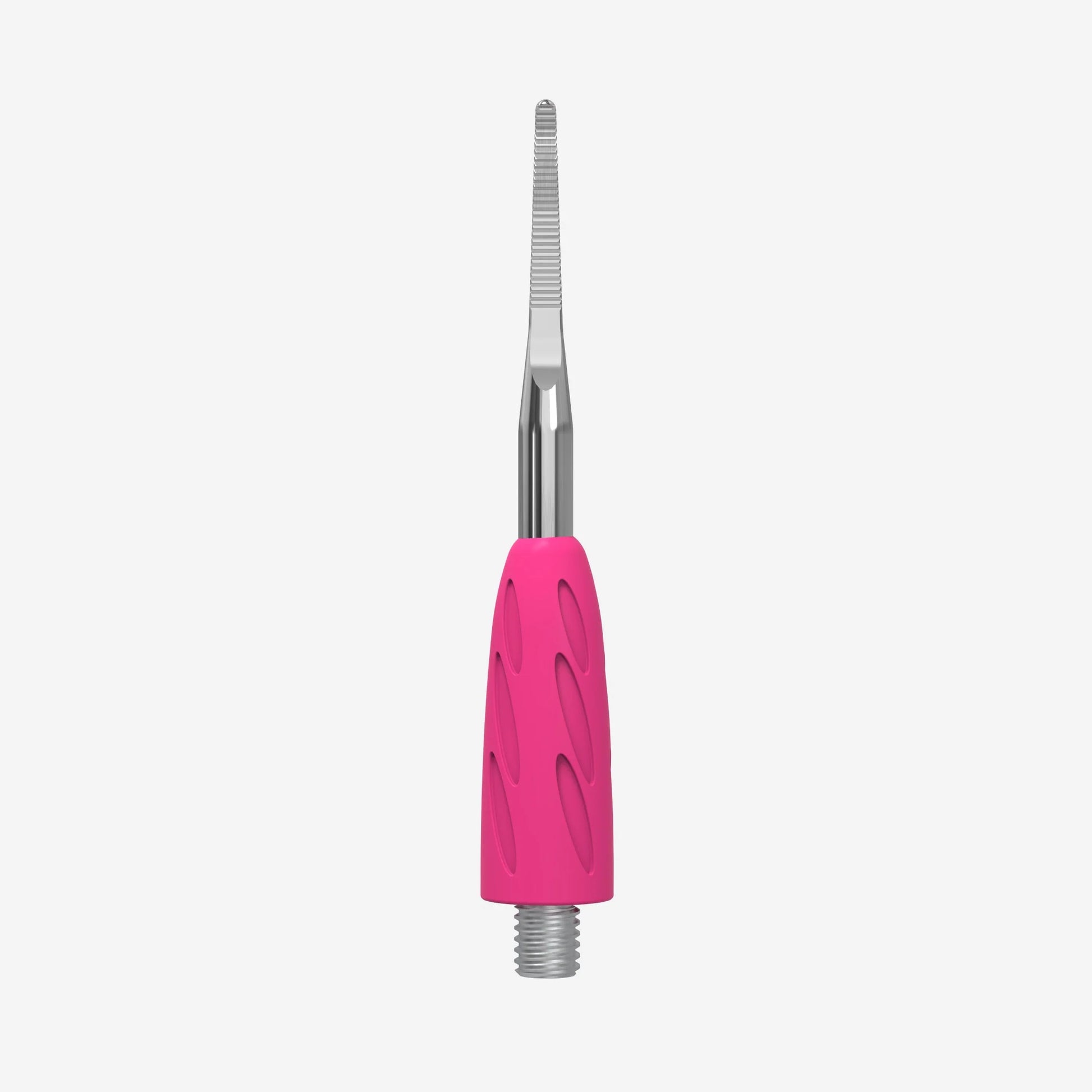 - Steel working parts and silicone are resistant to all types of disinfection and sterilization without losing quality. It is recommended to disinfect and sterilise the pusher in assembled form, without constant unscrewing and screwing of the instrument, which significantly simplifies and speeds up the maintenance process. To maintain its quality, it is best to use specialised disinfectants compatible with aluminium.